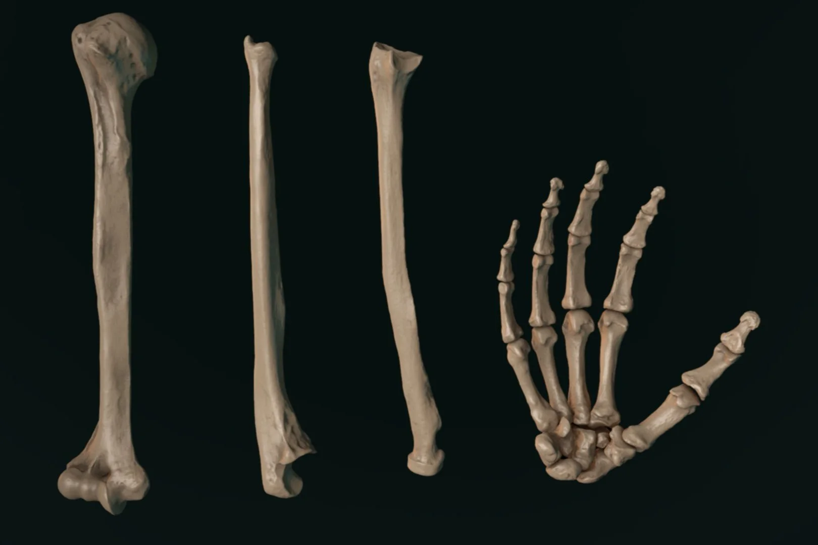Bones were scanned with a NextEngine 3D laser scanner, then refined in ZBrush to reshape, adjust proportions, and add texture using references. The goal was to create accurate models with detailed surface features. Topology was optimized for performance, and final setup was completed in Autodesk Maya.